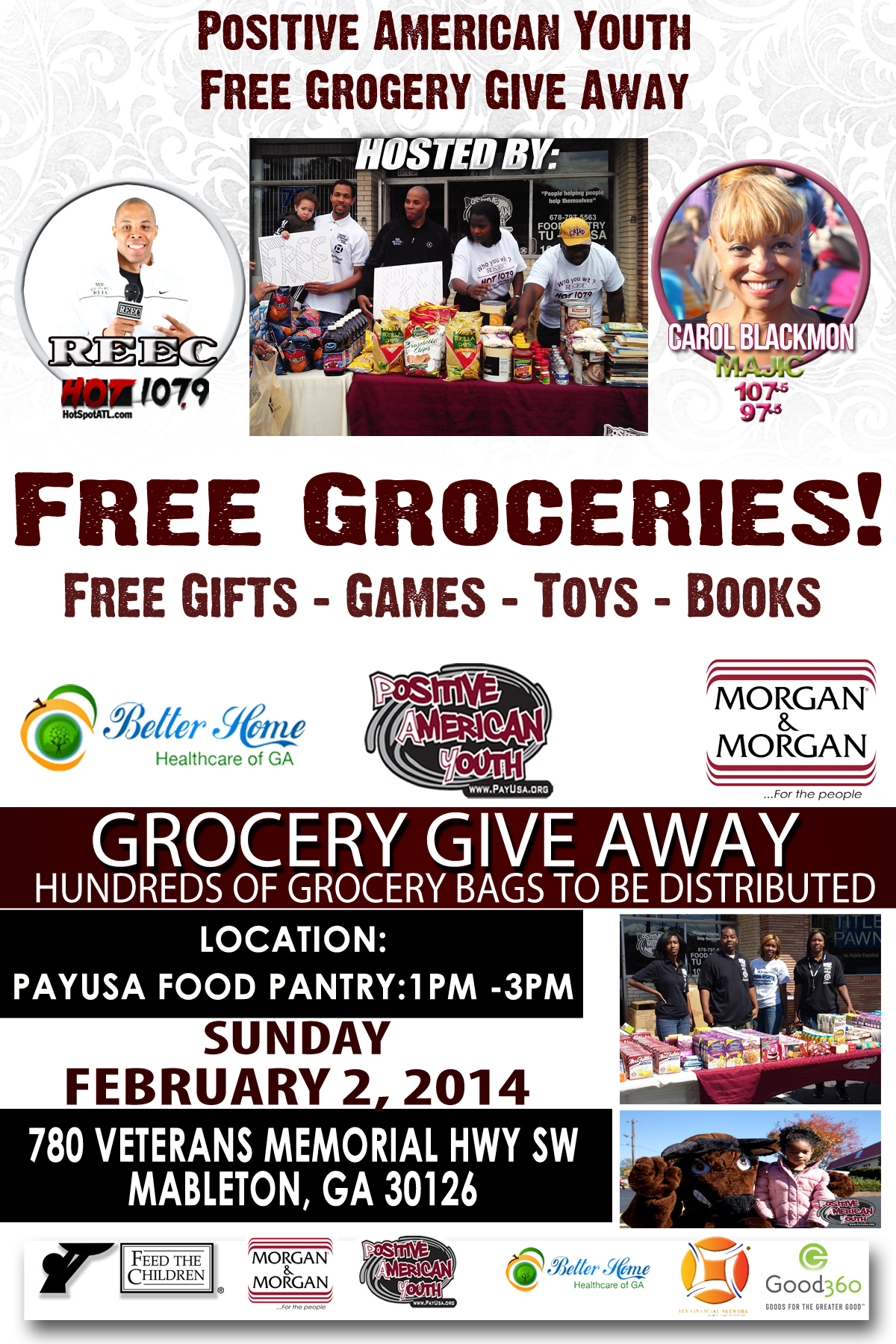 Join Hot107.9′s Reec and Positive American Youth (www.PayUsa.org) for a free grocery give away!
