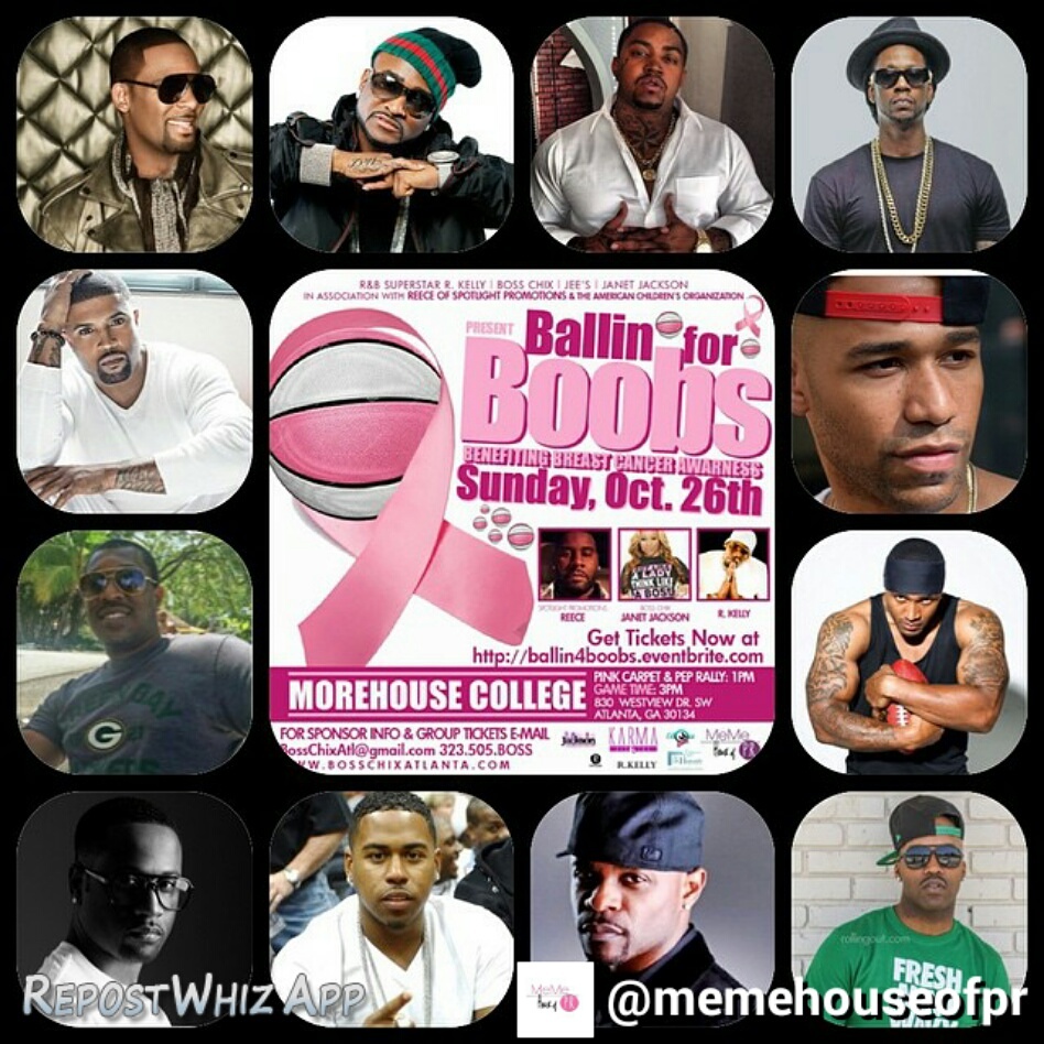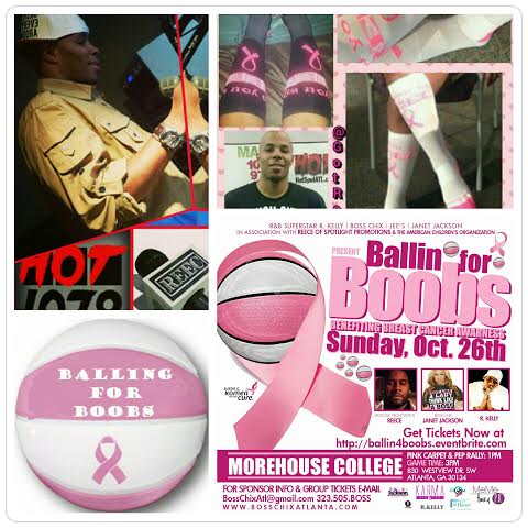 About The Event- “Ballin’ For Boobs” charity basketball game’s goal is to strengthen the communities knowledge on Breast Cancer and our community’s survivors. This is presented by Boss Chix CEO Janet Jackson & R&B Legend – R. Kelly. All of this to raise breast cancer awareness and give proceeds to Susan G. Komen foundation for research.