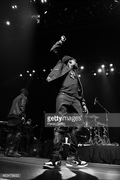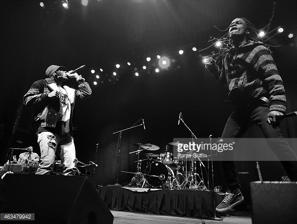 ATLANTA, GA – FEBRUARY 14: (EDITORS NOTE: Image has been converted to black and white.) Price and Oktane of Audio Push perform onstage at The Tabernacle on February 14, 2015 in Atlanta, Georgia. (Photo by Paras Griffin/Getty Images)