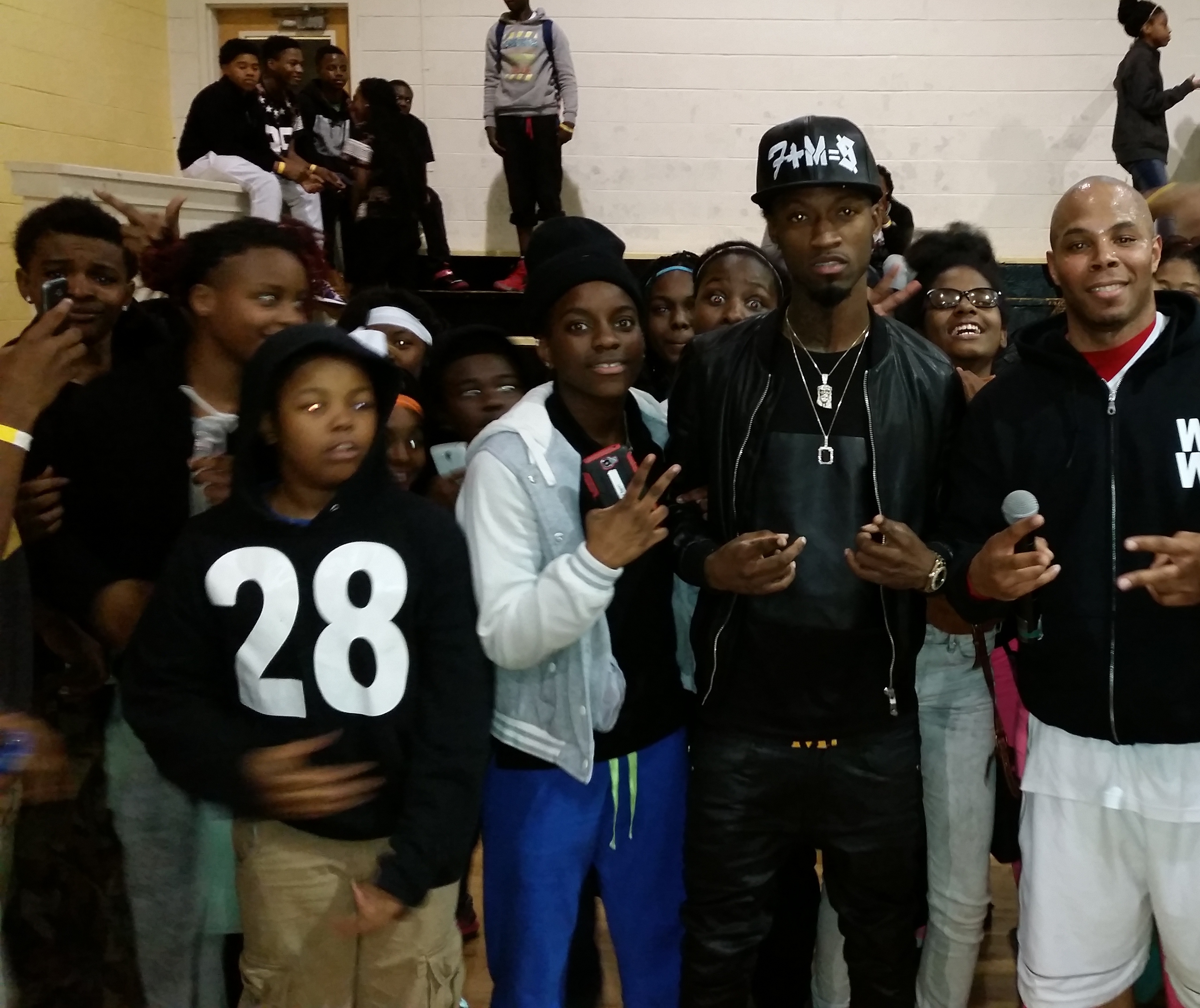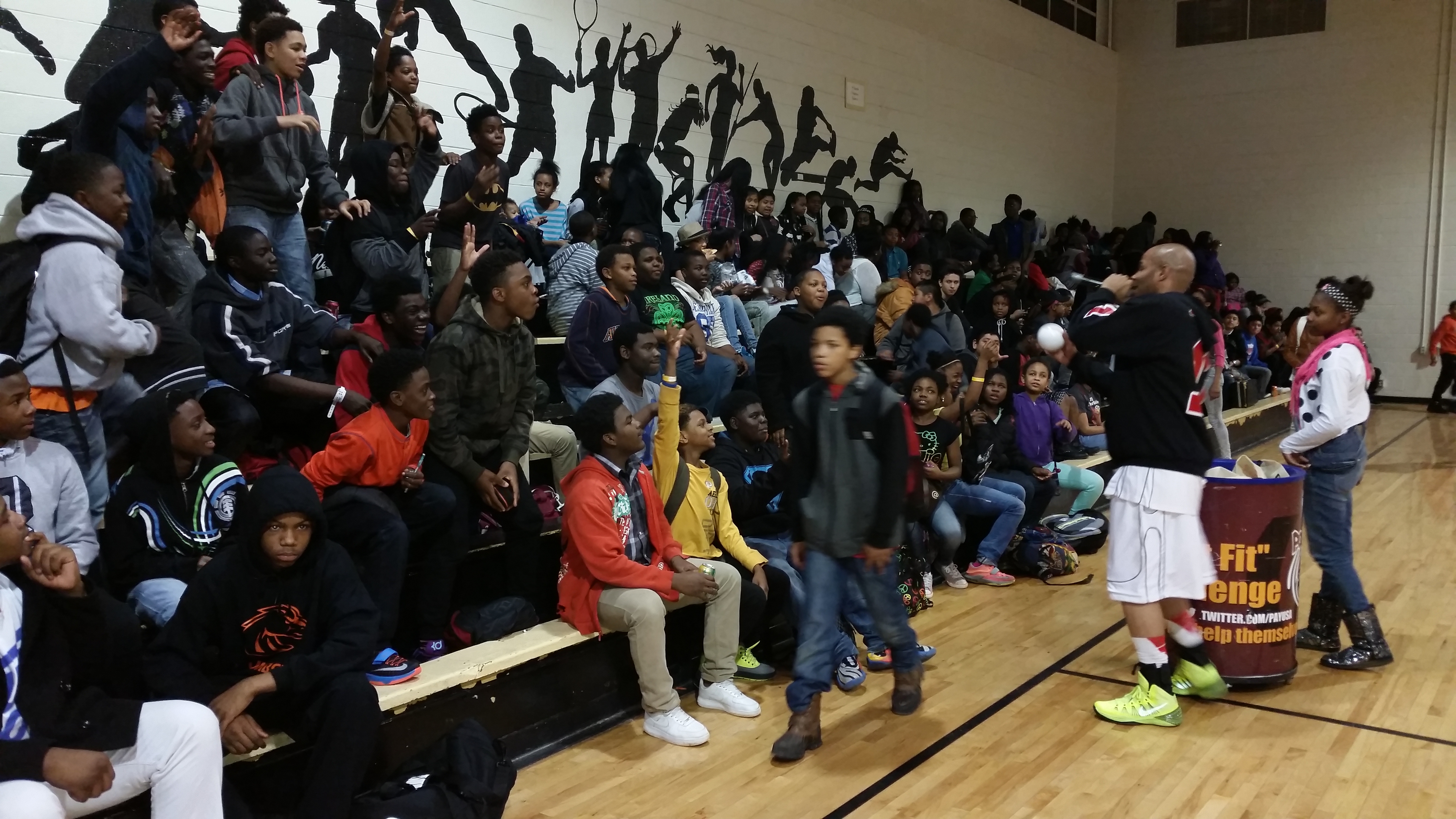 REEC, Bandit Gang Marco & The Ho 107.9 Hotshots Surprise Kids at Crawford Long Middle in Atlanta! A gym packed with students where on full throttle as the Hot 107.9 Hot shots celebrity basketball team took the court to play against the teachers and Fathers at Crawford W. Long Middle School in Atlanta. One pf Atl’s hottest Hip Hop Artist, Bandit Gang Marco Came Through! The event was hosted by Hot 107.9’s REEC.
