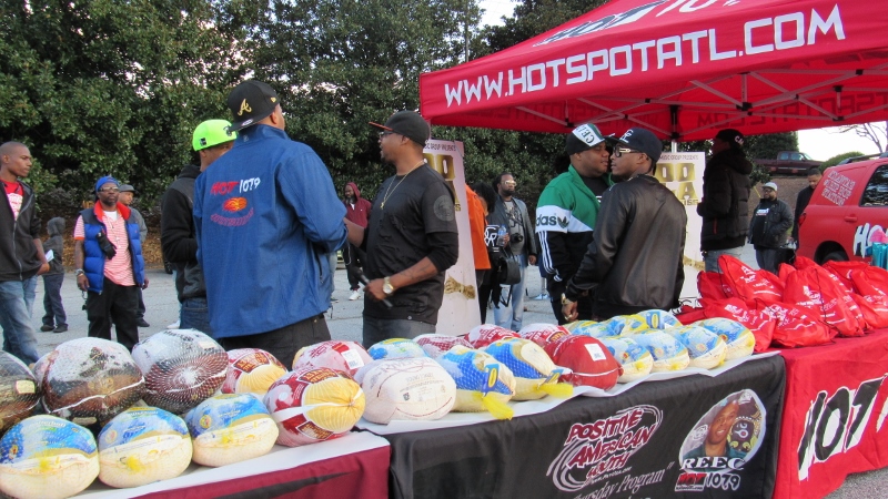 Positive American Youth & Gouk Music joined forces to give away hundreds of turkeys & toys to families in need. The event was hosted at Glitter Salon & Spa at South Dekalb Mall. Many celebs came out including TK-N-Cash, super producer Cassius Jay, Heavy Records, Oola Da Boss and others. Keep listening to Reec on Hot 107.9FM weekdays 10am to 2pm