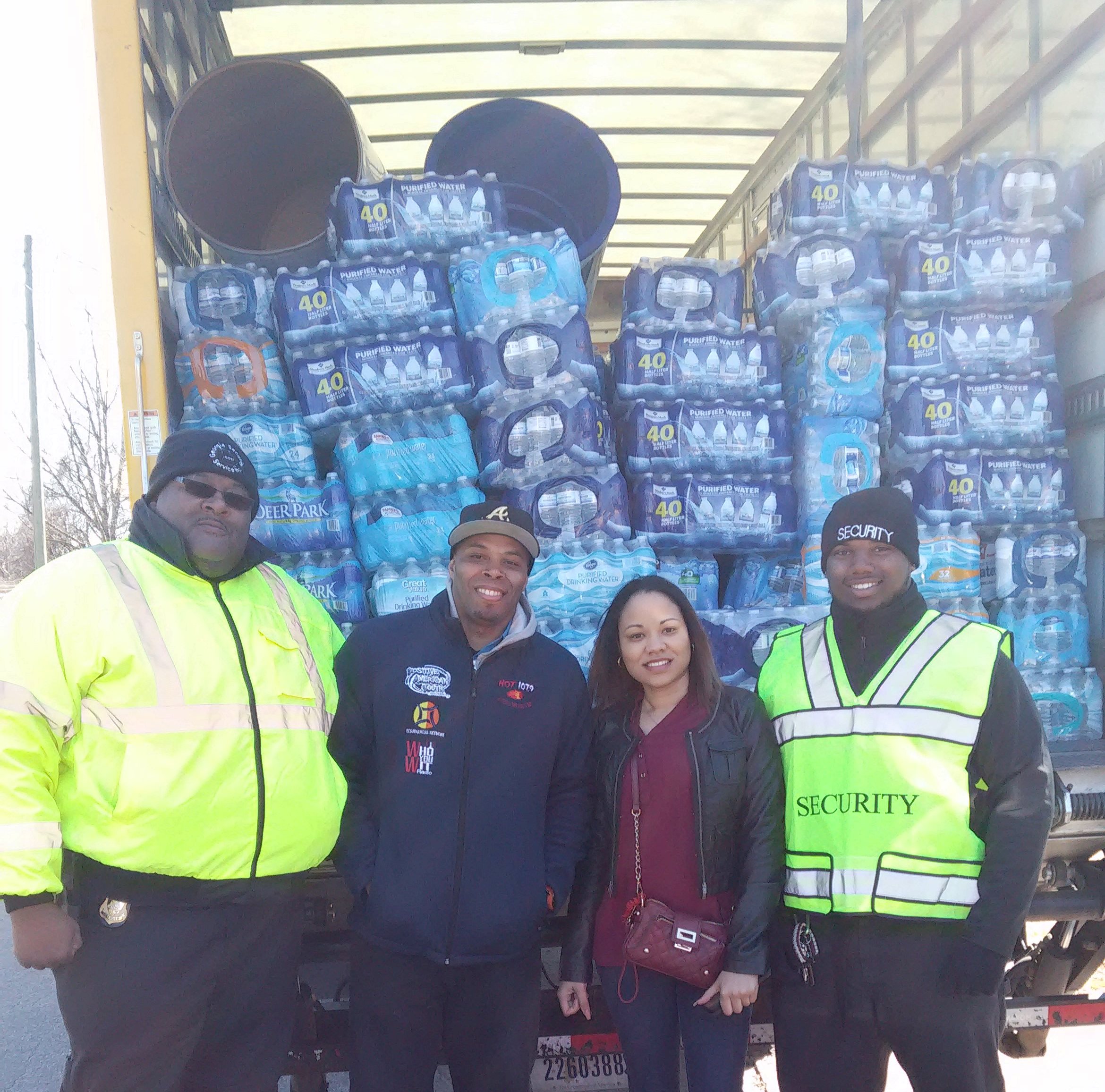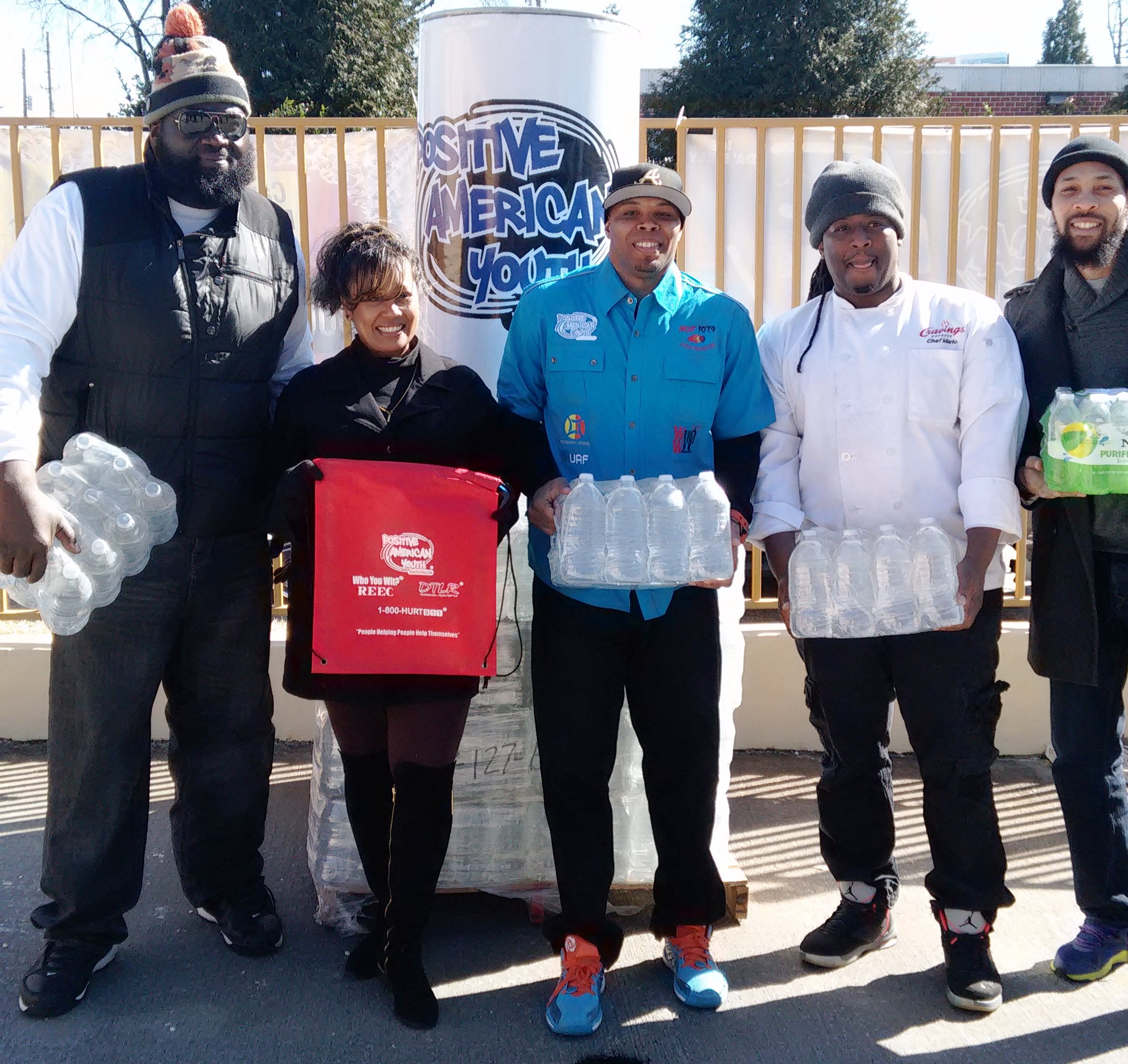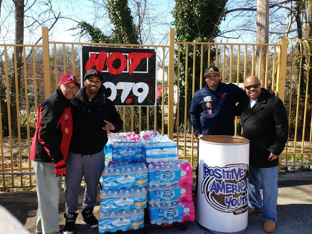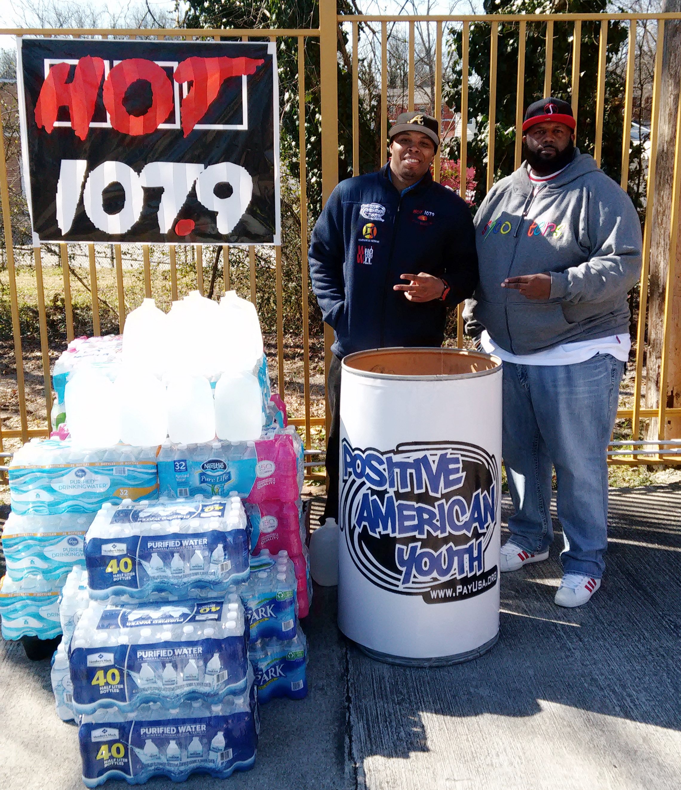 With the help of Radio One (Hot 107.9) to get the word out, and pallets of water being donated from supporters Positive American Youth Raised over 1,000 cases of water! The event was hosted by Reec of Hot 107.9. Celebrities stopped by to show support including Cap 1 (Street Execs), DJ Scream, Poster Child J1 & Hurricane Dave.