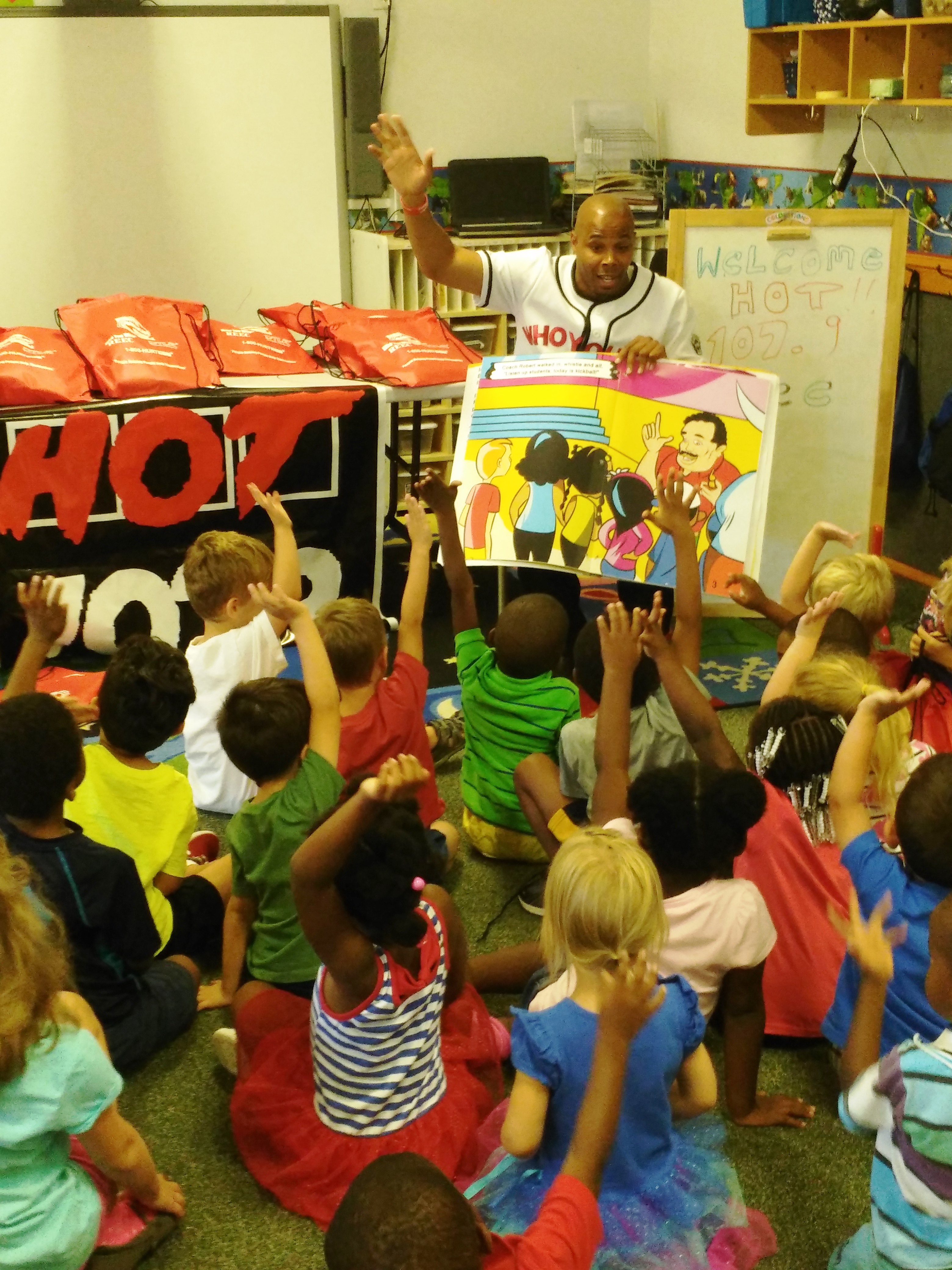In an effort to promote Youth Literacy in a fun way, Reec of Hot 107.9 visited a very eager group of students and staff. They read “Ice Gets Fit” a children’s book authored by Reec, handed out book bags, with toys and fitness items inside and signed autographs for participants!