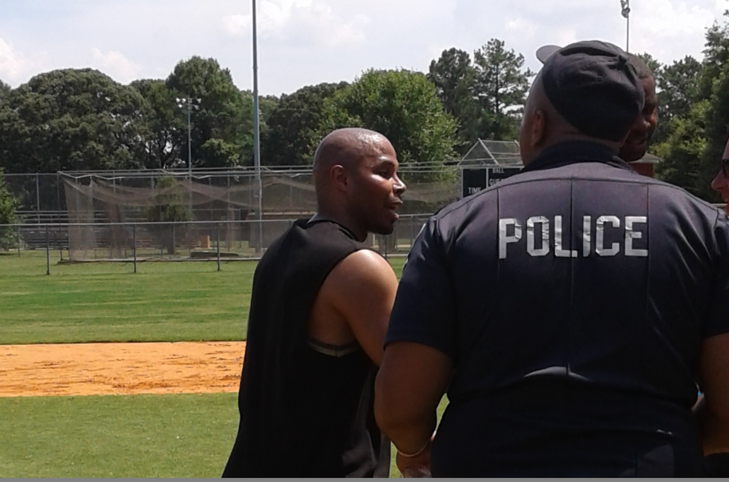 CampersVsCops kickball game was a hit! Free food provided by Positive American Youth and entertainment from Hot 107.9‘s own Reec Swiney. Great way to create positive interaction with hundreds of inner city youth and Atlanta Police Department. #kickball #Community
