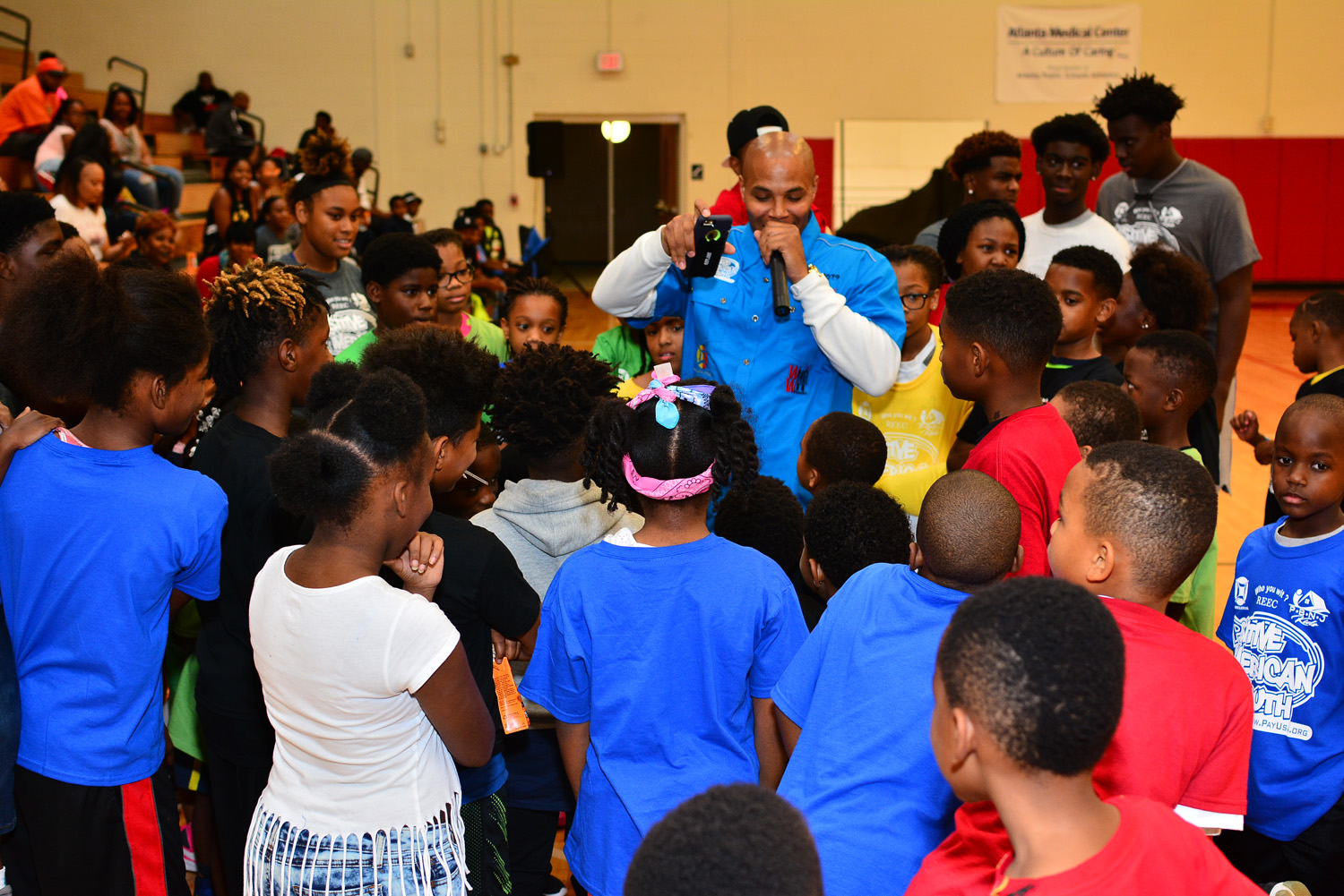 Positive American Youth kicks off it’s programming year with a huge free event titled PAYDAY. This years #Payday2016featured and basketball camp, celebrity bball game, candy give away and live entertainment! Hot 107.9‘s own Reec Swiney & Shyneka Richardson hosted the event alongside Young Dro. Halftime was full of excitement from FlipCity South AIR ELITE INC. and #Damani. The event ended with Positive American Youth giving away over 50,000 pieces of candy to promote a safe Halloween!