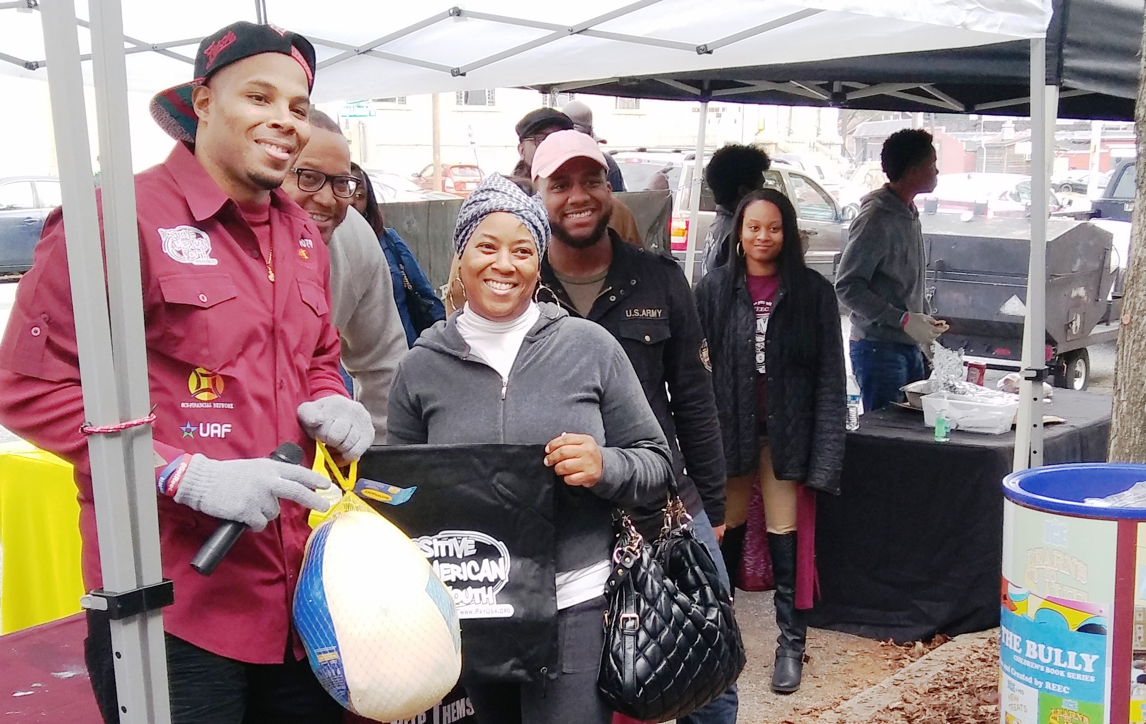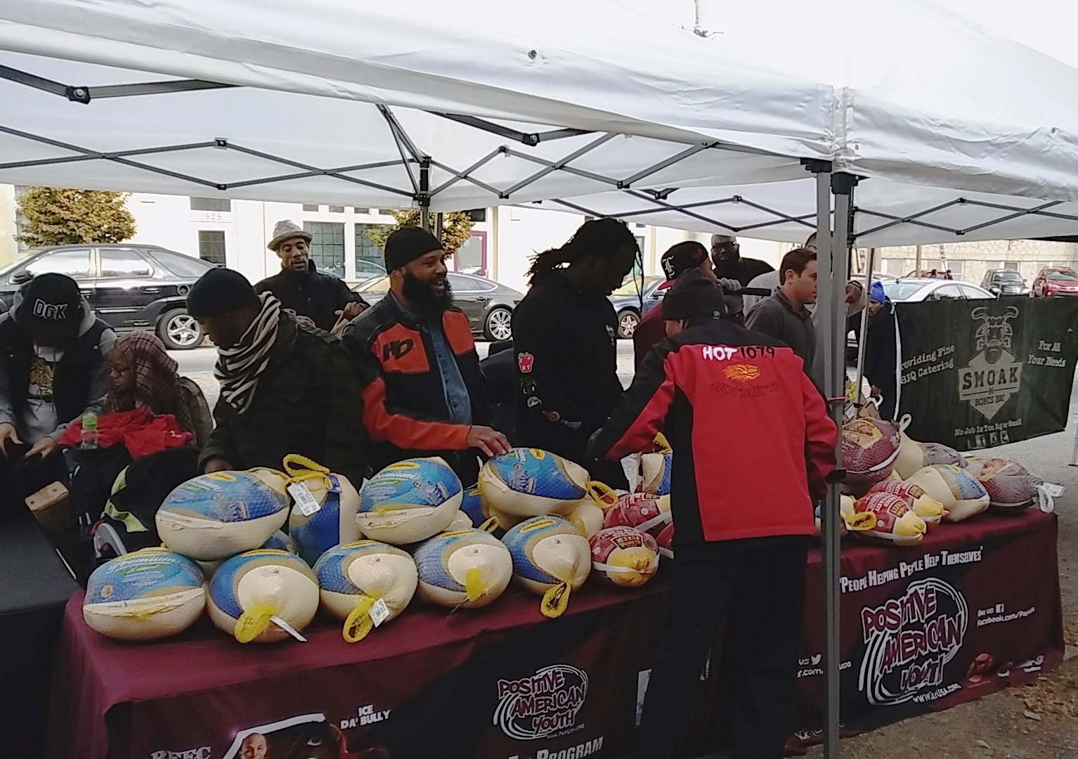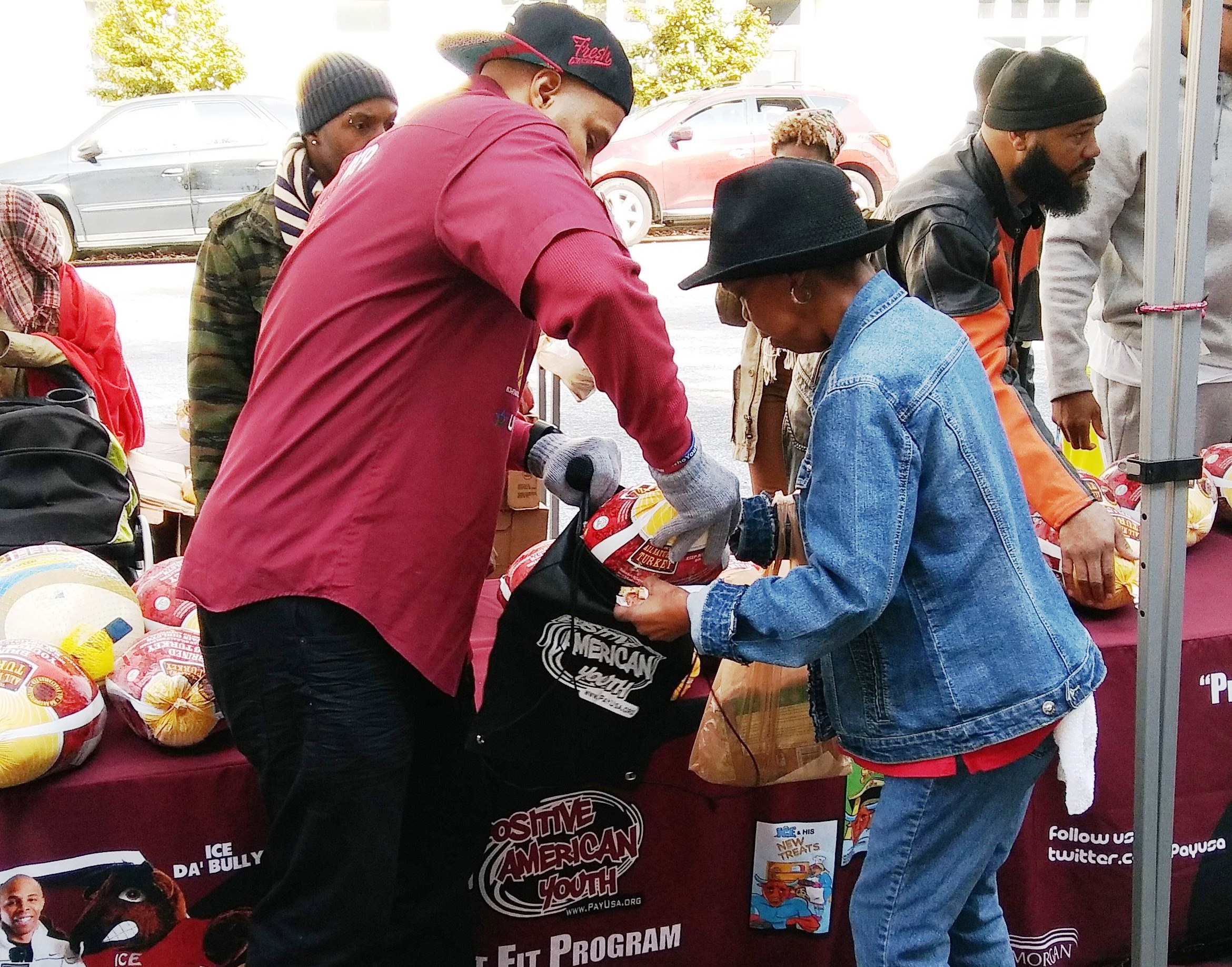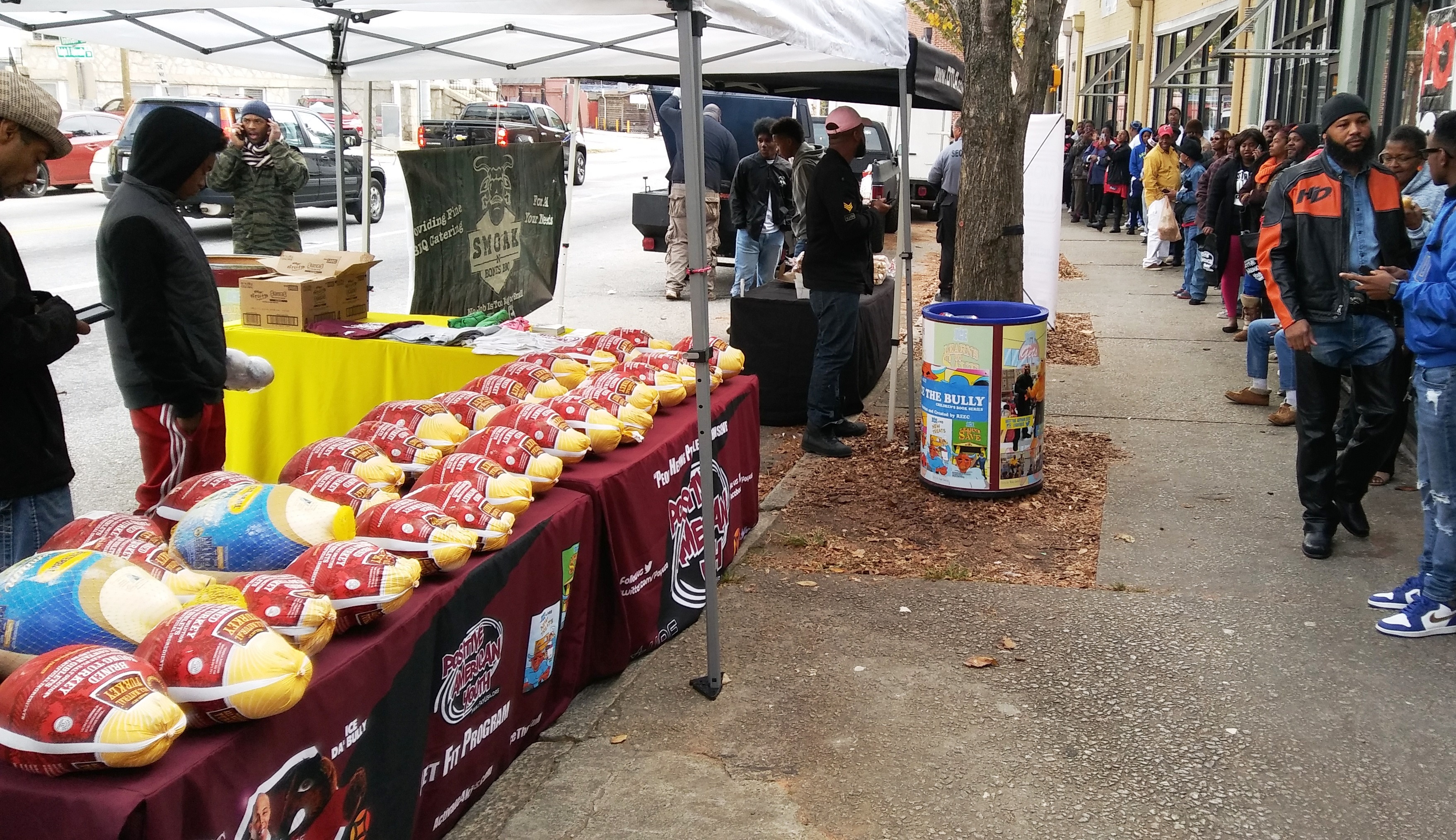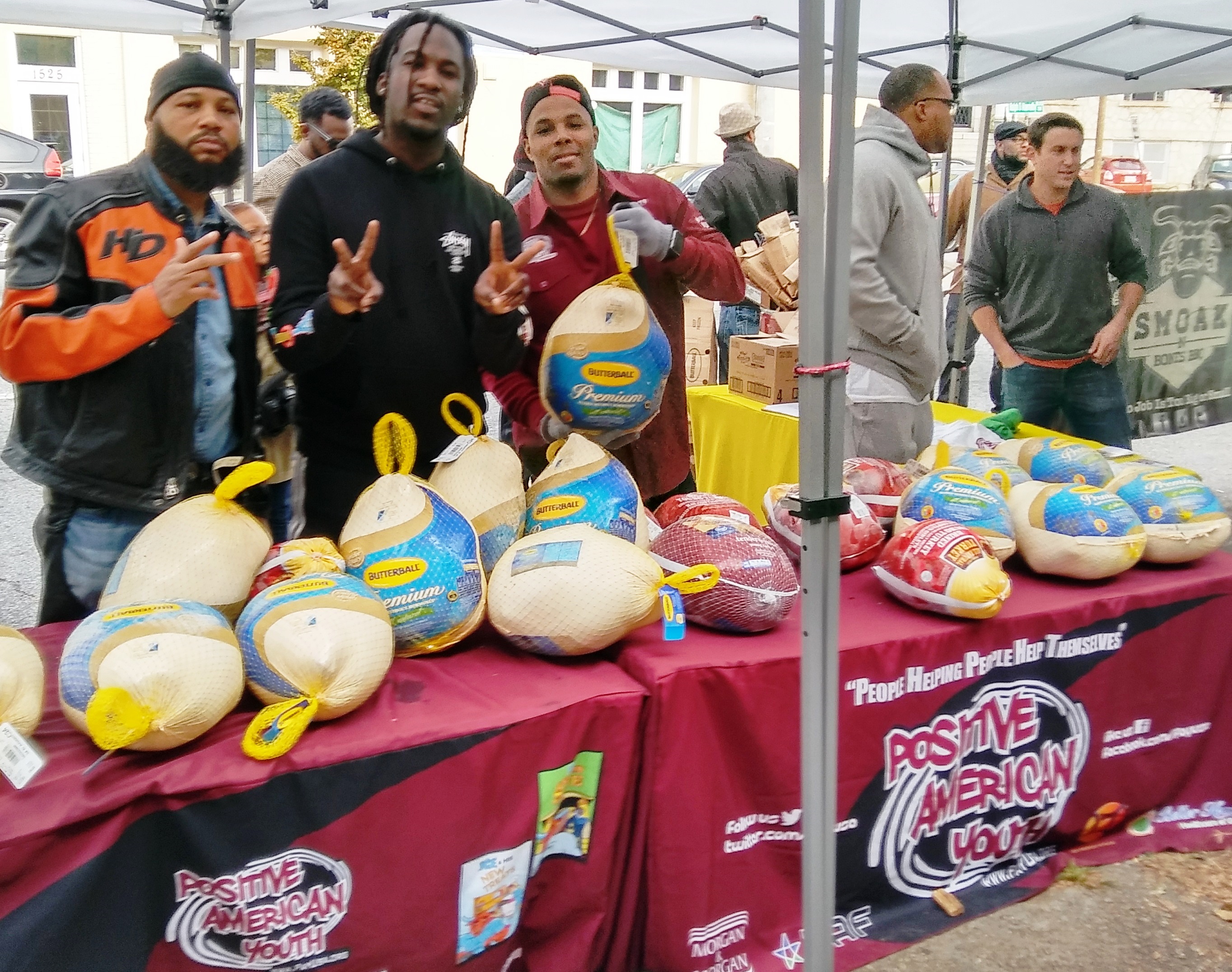 Positive American Youth was able to supply hundreds of families in need with free frozen turkeys just in time for the holidays! Reec of Hot 107.9 kept the crowd entertained along with Dj Deceptacon. Mike Smoake, CEO of Smoake & Bones BBQ, provided the crowd with delicious treats hot of of the grill for free! 77 Families also received holiday trees and ornaments courtesy of For Prints Call Us. The event was sponsored by Attorney Justin D. Miller of Morgan & Morgan Law & Powered by Positive American Youth