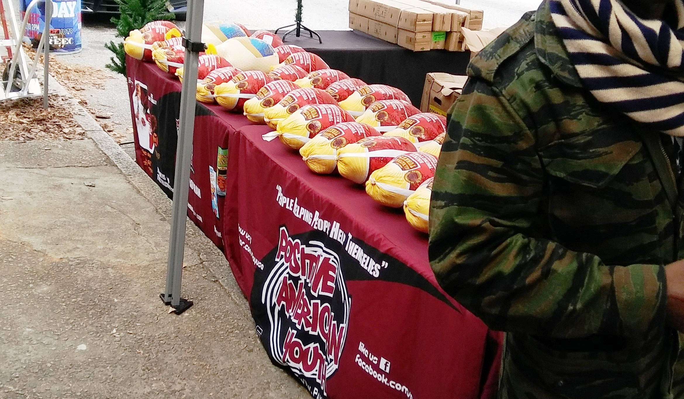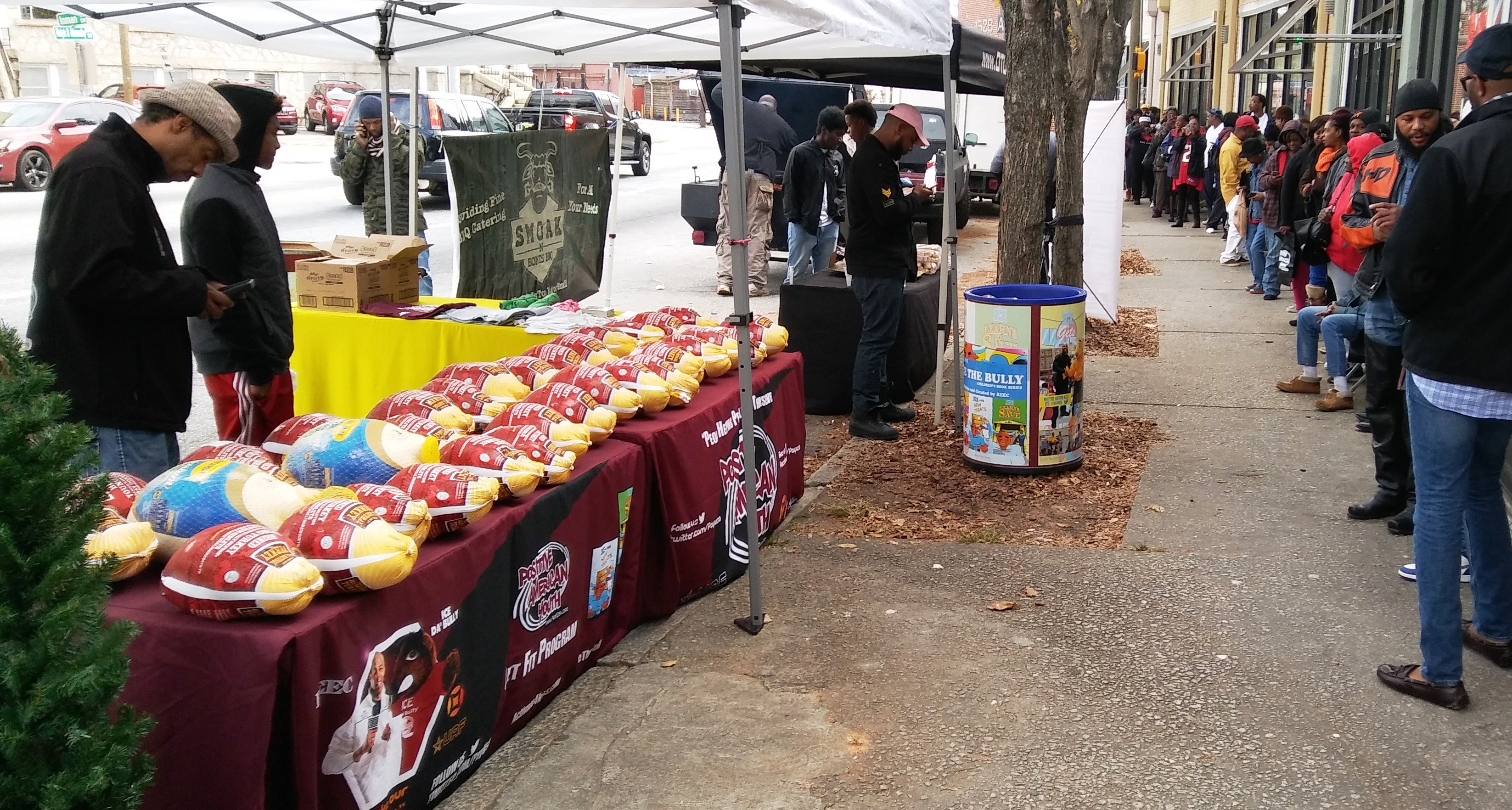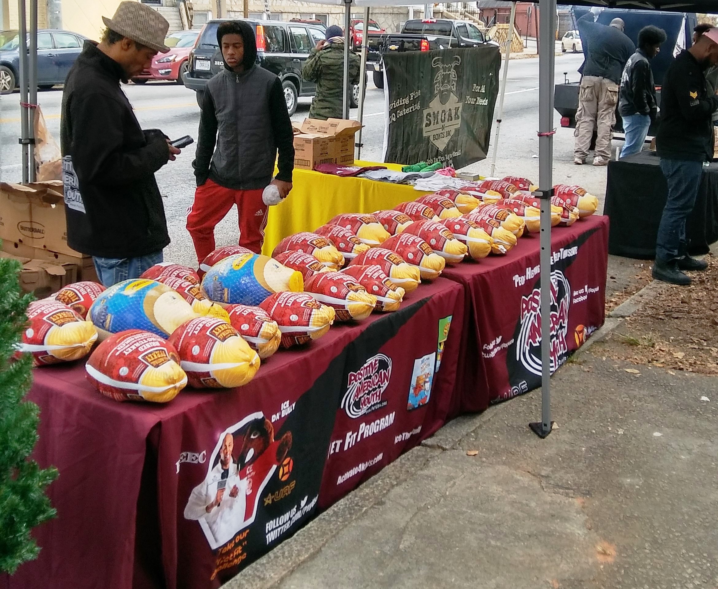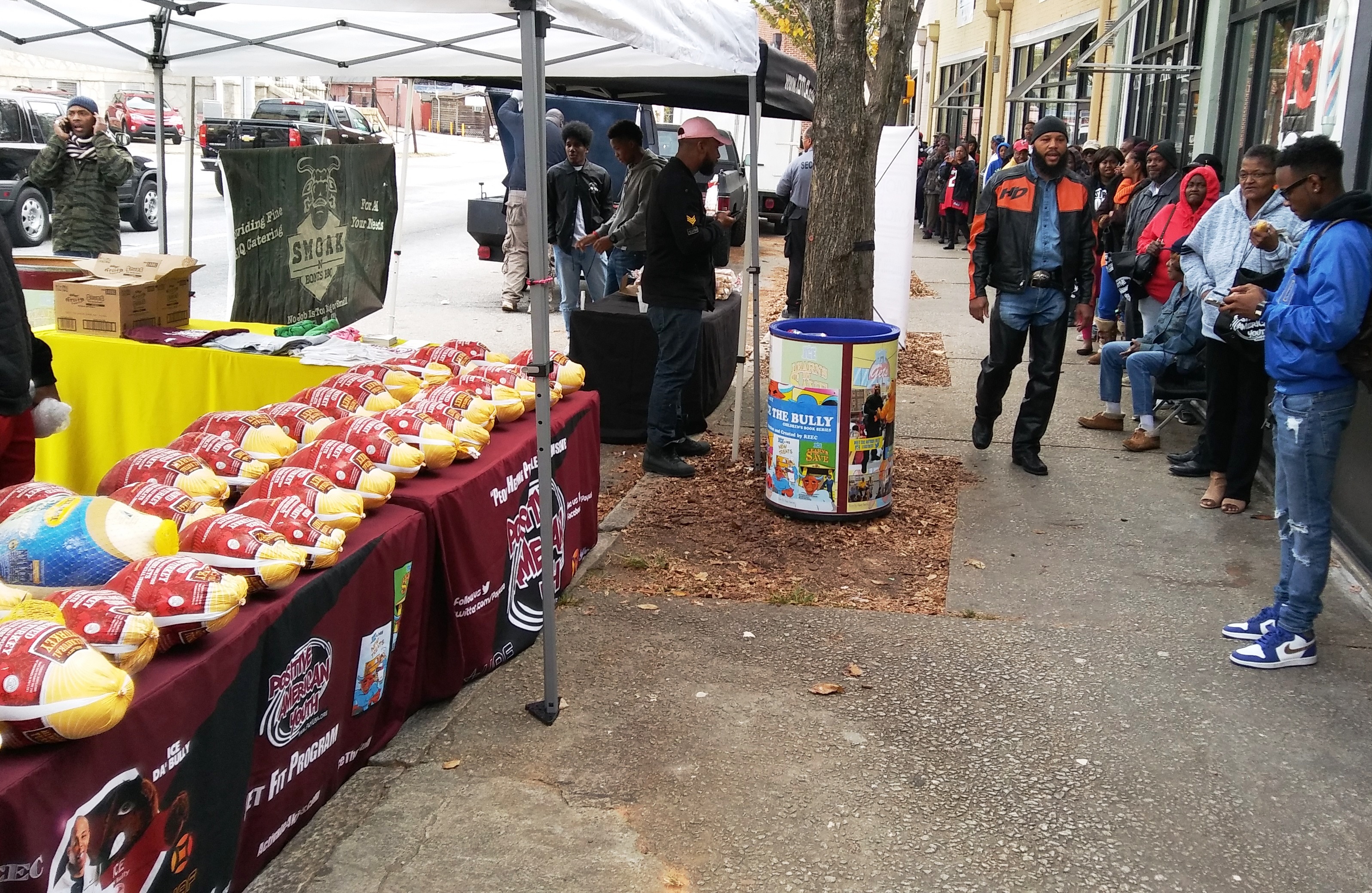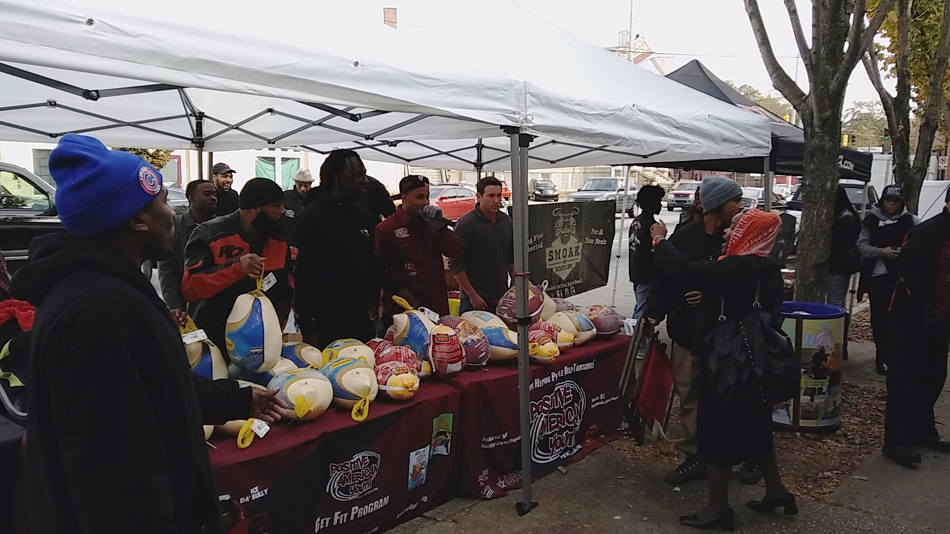 Positive American Youth was able to supply hundreds of families in need with free frozen turkeys just in time for the holidays! Reec of Hot 107.9 kept the crowd entertained along with Dj Deceptacon. Mike Smoake, CEO of Smoake & Bones BBQ, provided the crowd with delicious treats hot of of the grill for free! 77 Families also received holiday trees and ornaments courtesy of For Prints Call Us. The event was sponsored by Attorney Justin D. Miller of Morgan & Morgan Law & Powered by Positive American Youth