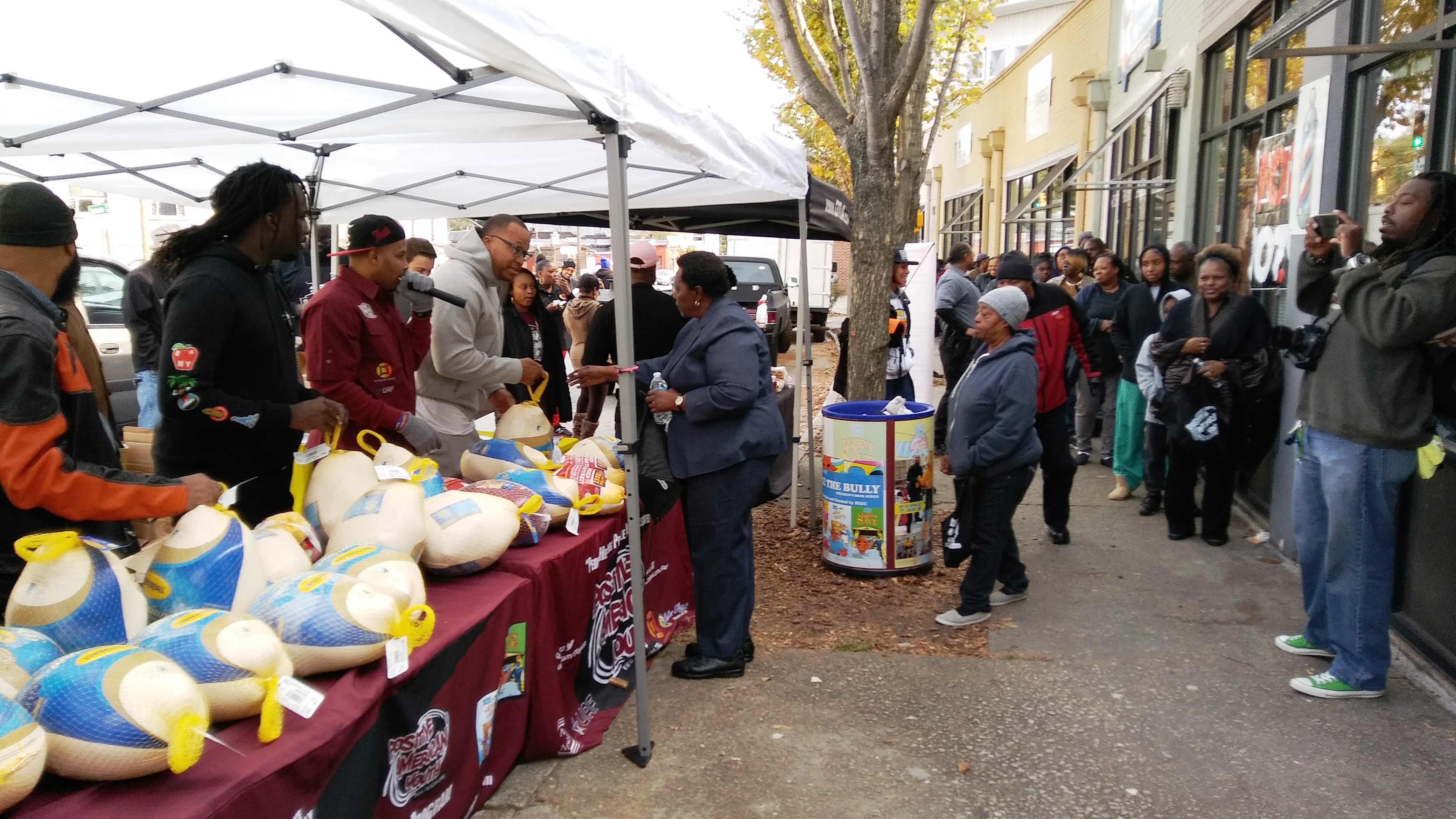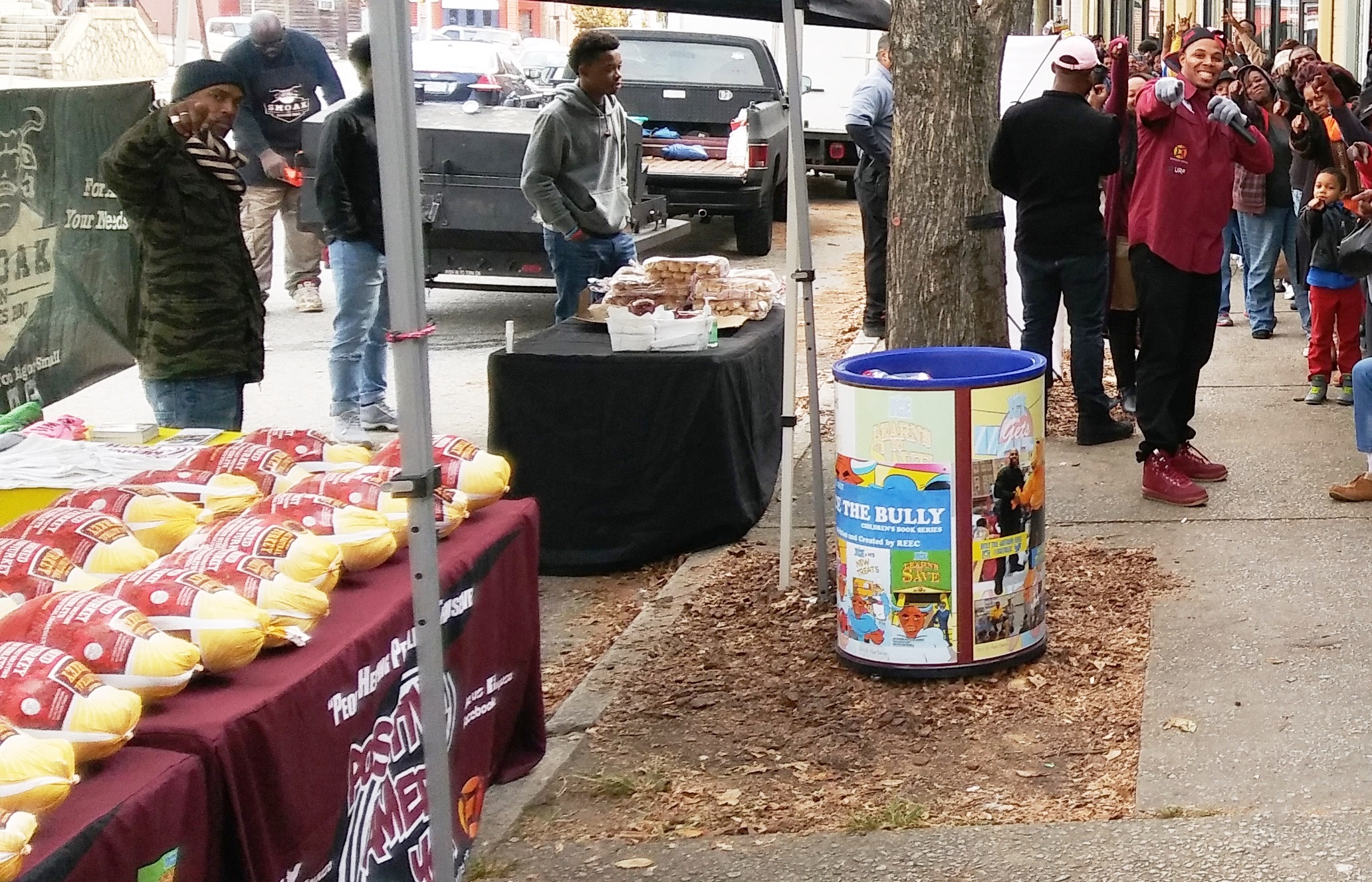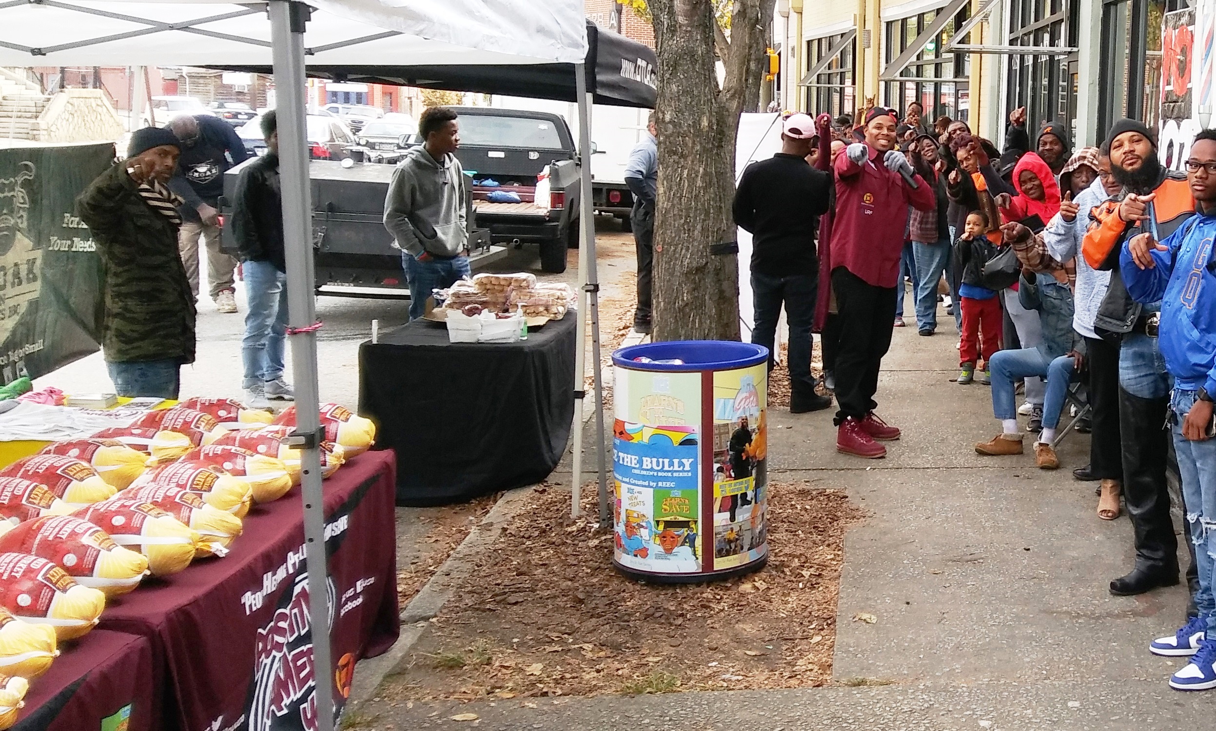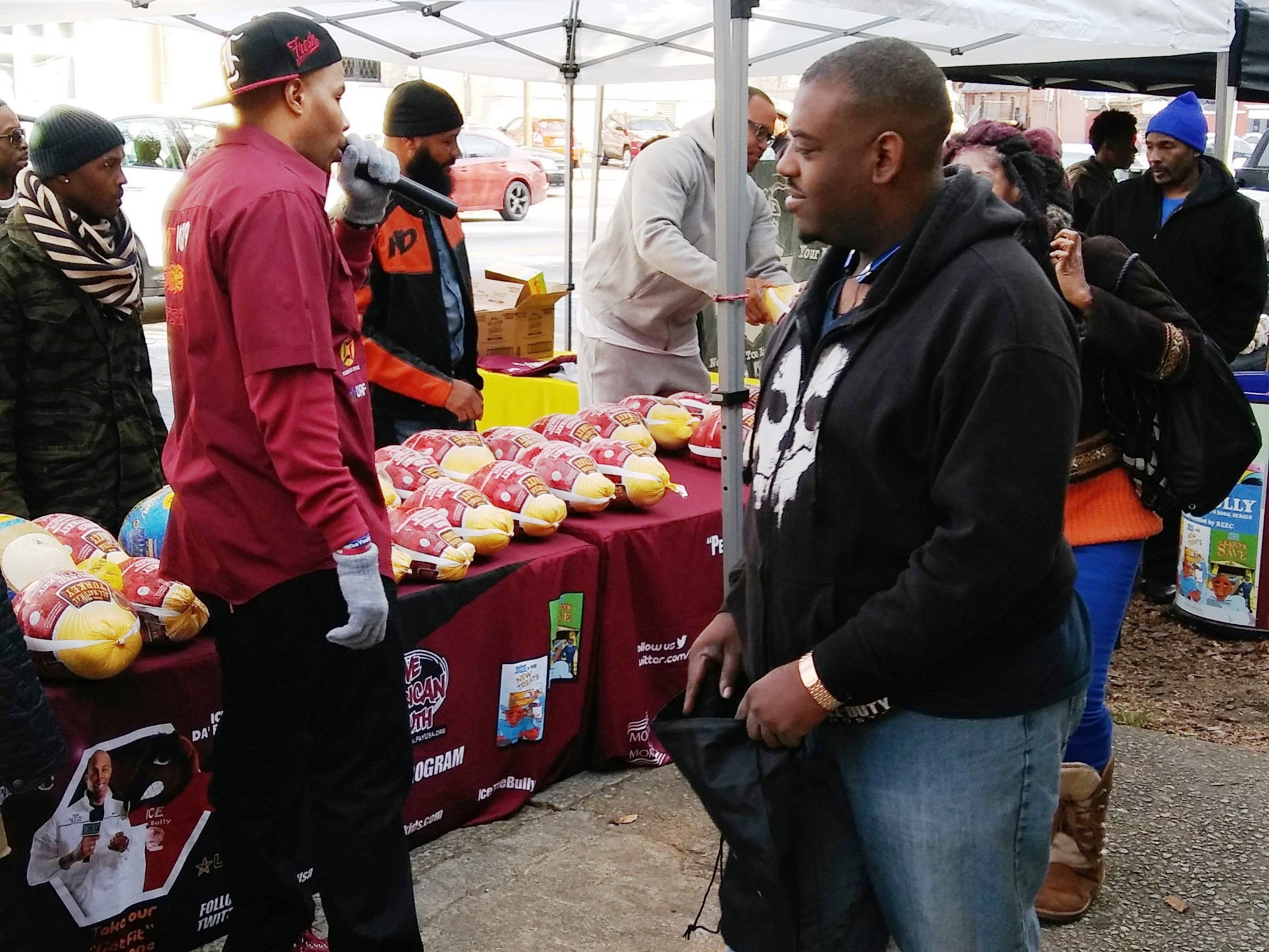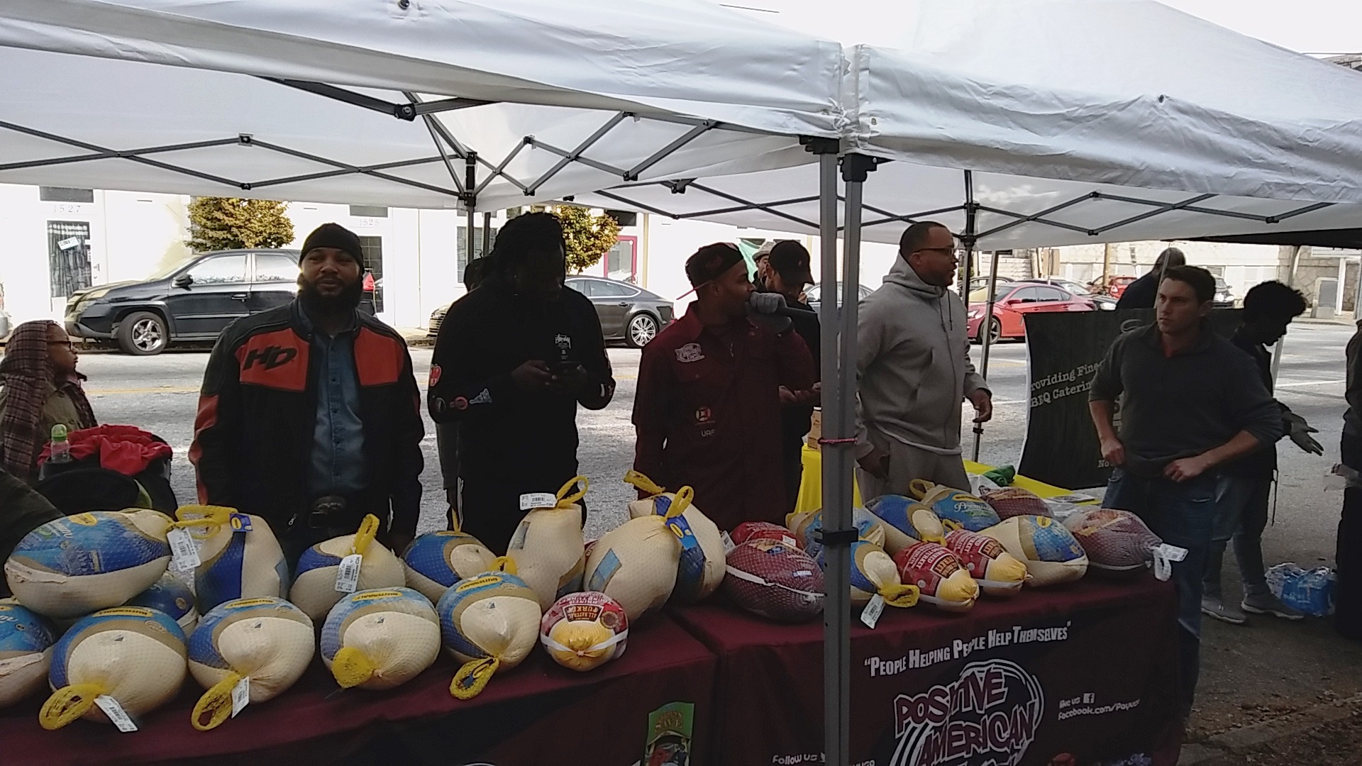 Positive American Youth was able to supply hundreds of families in need with free frozen turkeys just in time for the holidays! Reec of Hot 107.9 kept the crowd entertained along with Dj Deceptacon. Mike Smoake, CEO of Smoake & Bones BBQ, provided the crowd with delicious treats hot of of the grill for free! 77 Families also received holiday trees and ornaments courtesy of For Prints Call Us. The event was sponsored by Attorney Justin D. Miller of Morgan & Morgan Law & Powered by Positive American Youth