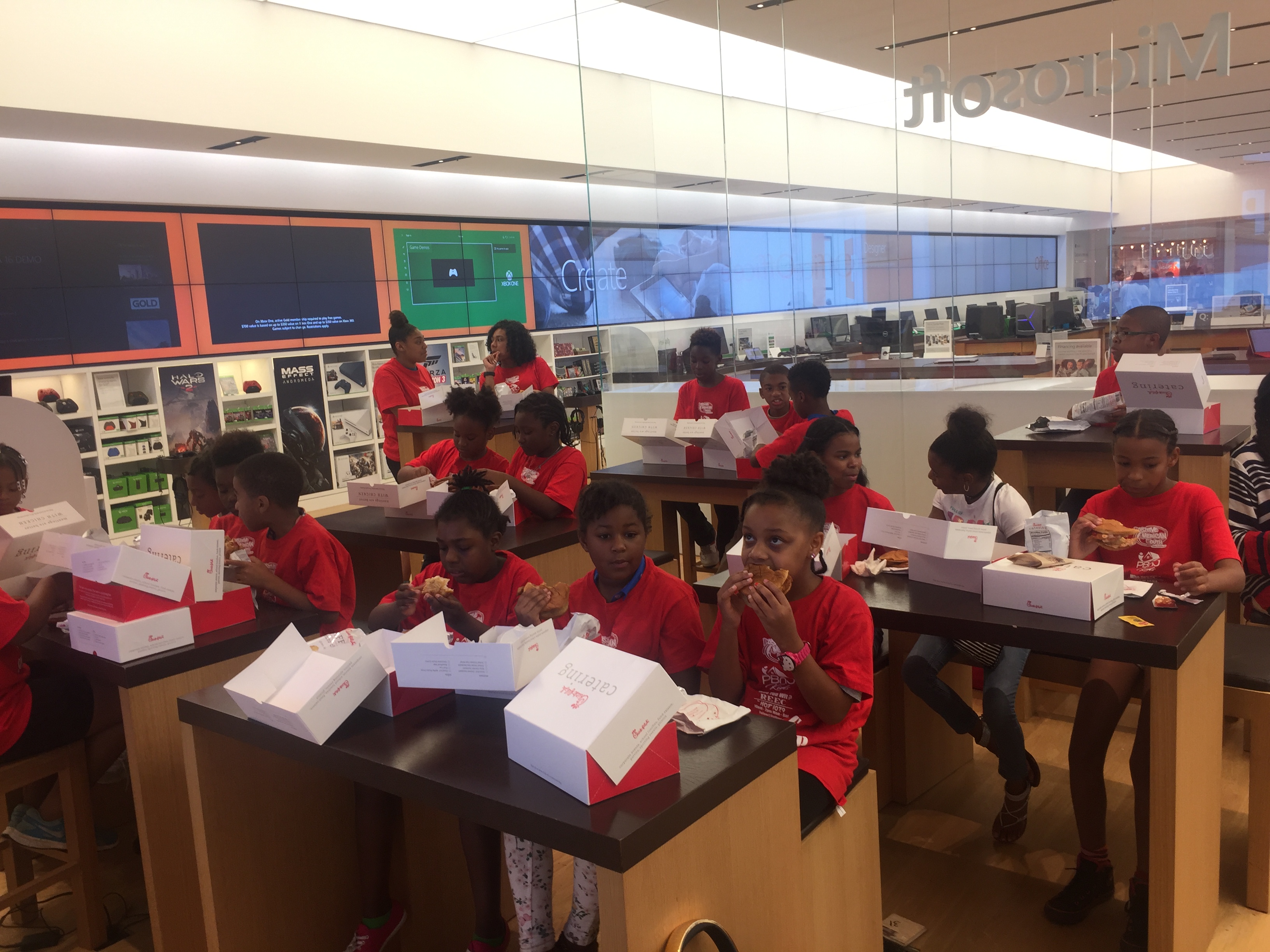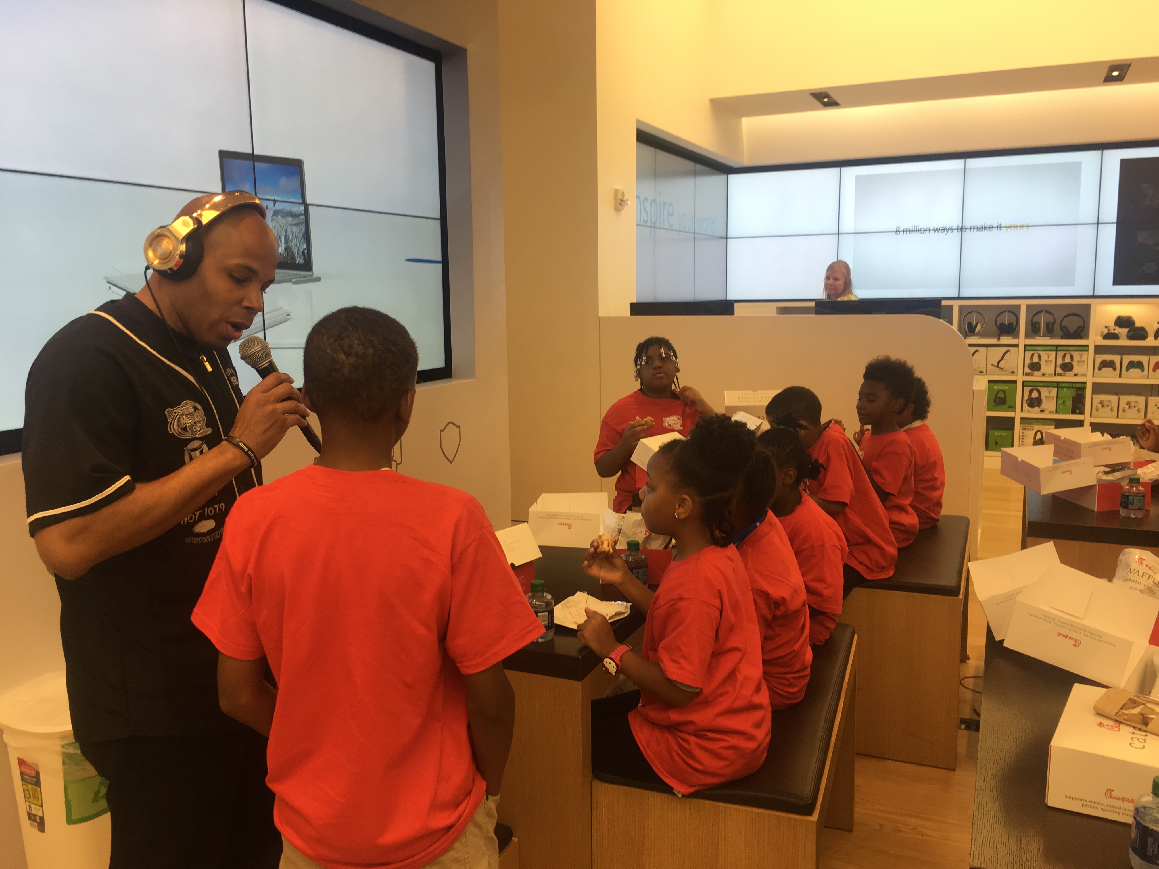The kids not only got the chance to talk on the radio with Reec on Hot 107.9, but they also built there own APP that can be downloaded on the APP Store & they where put into teams were they put together business plans & presentations with Microsoft’s new Business Management Software. They also got to test the new gaming systems & the virtual reality simulator!