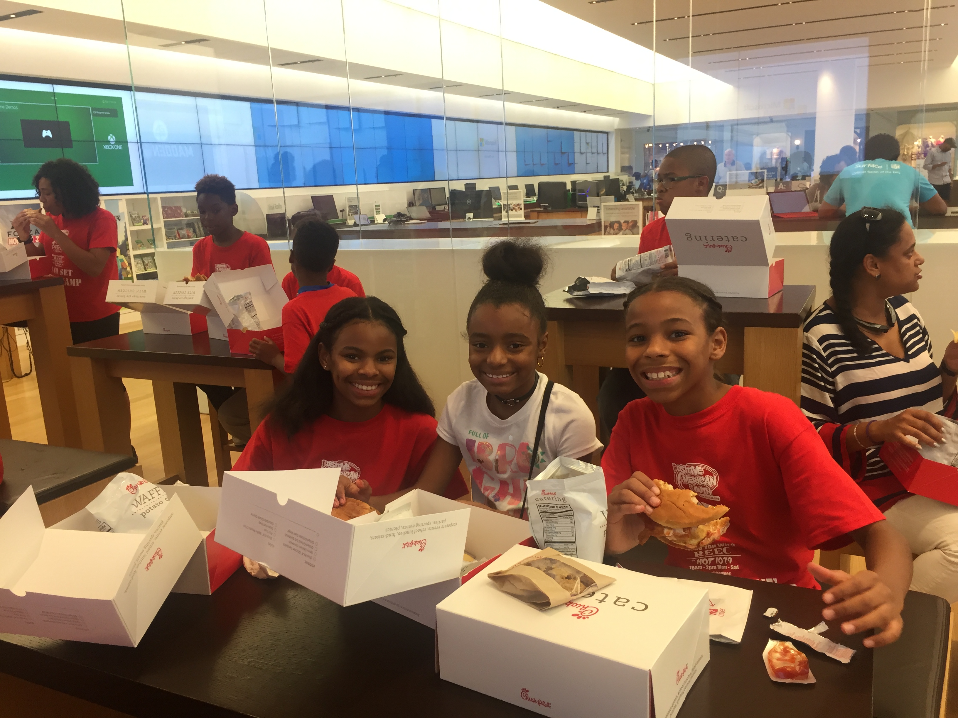 Each camper received gifts from Reec, Positive American Youth, Hot 107.9 & they were treated to lunch by Chick-Fil-A (3280 Peachtree Rd. Atlanta).