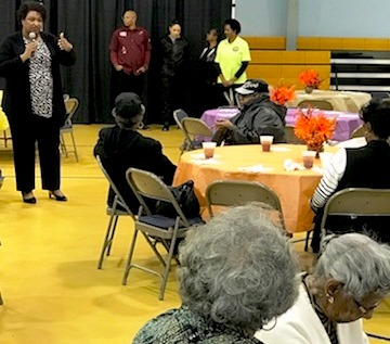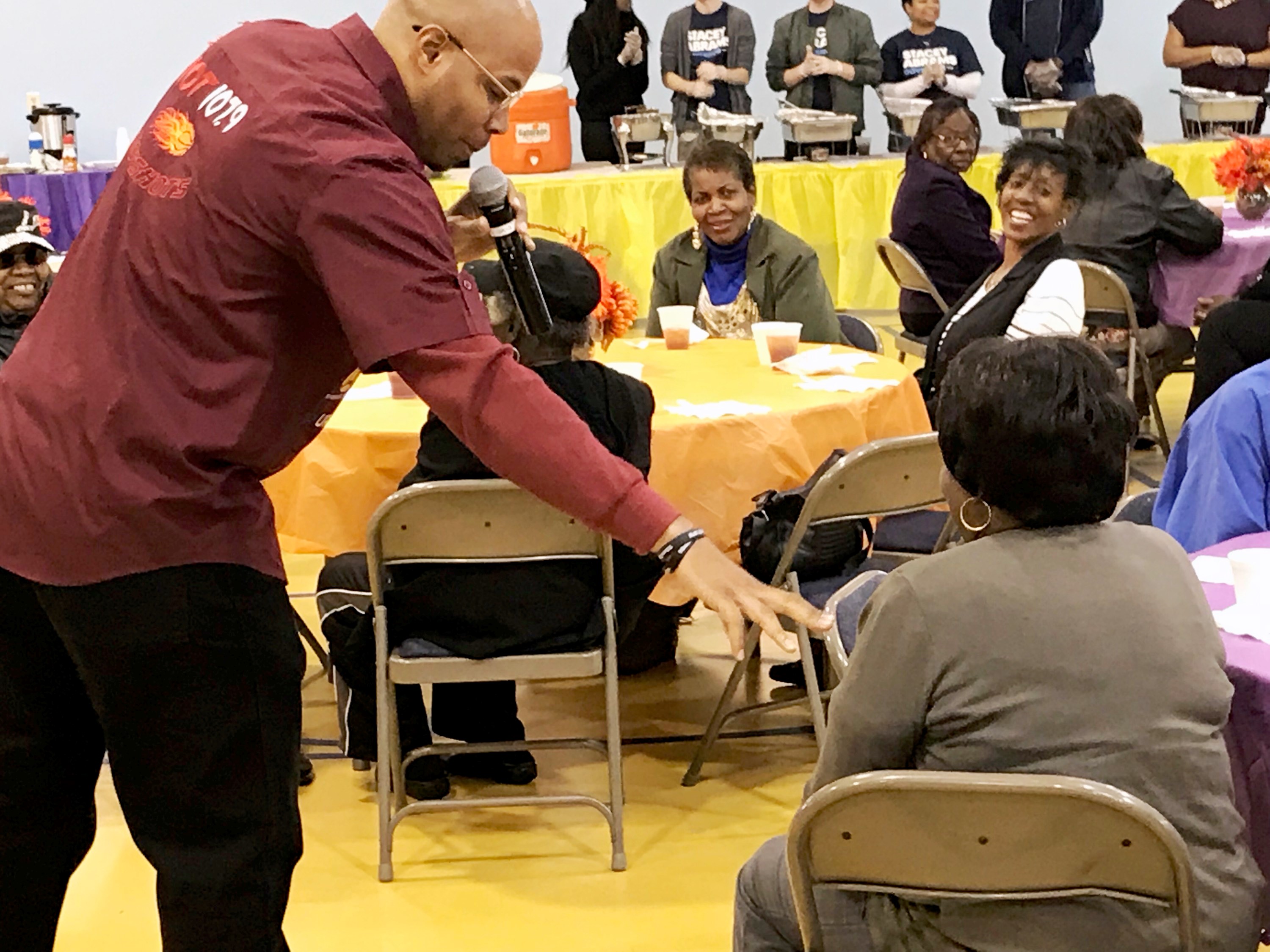 Reec (Hot 107.9), PAYUSA & Landing Tracts Team up To Feed Seniors For Thanksgiving Dinner. Stacey Abrams, Georgia State Rep, also came by and shared kind words and stayed to serve plates to seniors alongside Reec & volunteers.