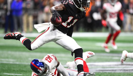 The Falcons pulled out a win on Monday Night Football this week, getting back in the win column with a 23-20 win against Eli Manning and the Giants. Matt Ryan threw for 379 yards and a touchdown, and Julio had 9 catches for 104 yards.