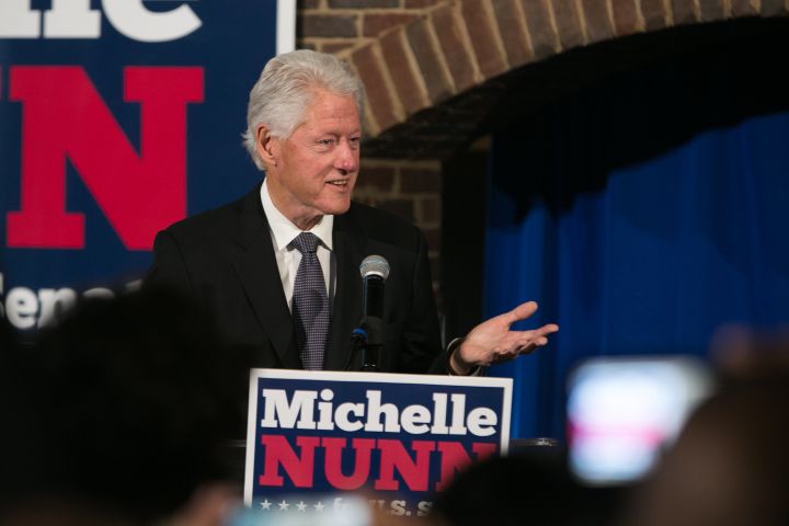Former president Bill Clinton addresses the audience as he campaigns with Georgia Senate candidate Michelle Nunn at Paschal’s on October 31, 2014 in Atlanta, Georgia. Nunn is running against Georgia Republican Senate candidate David Perdue.