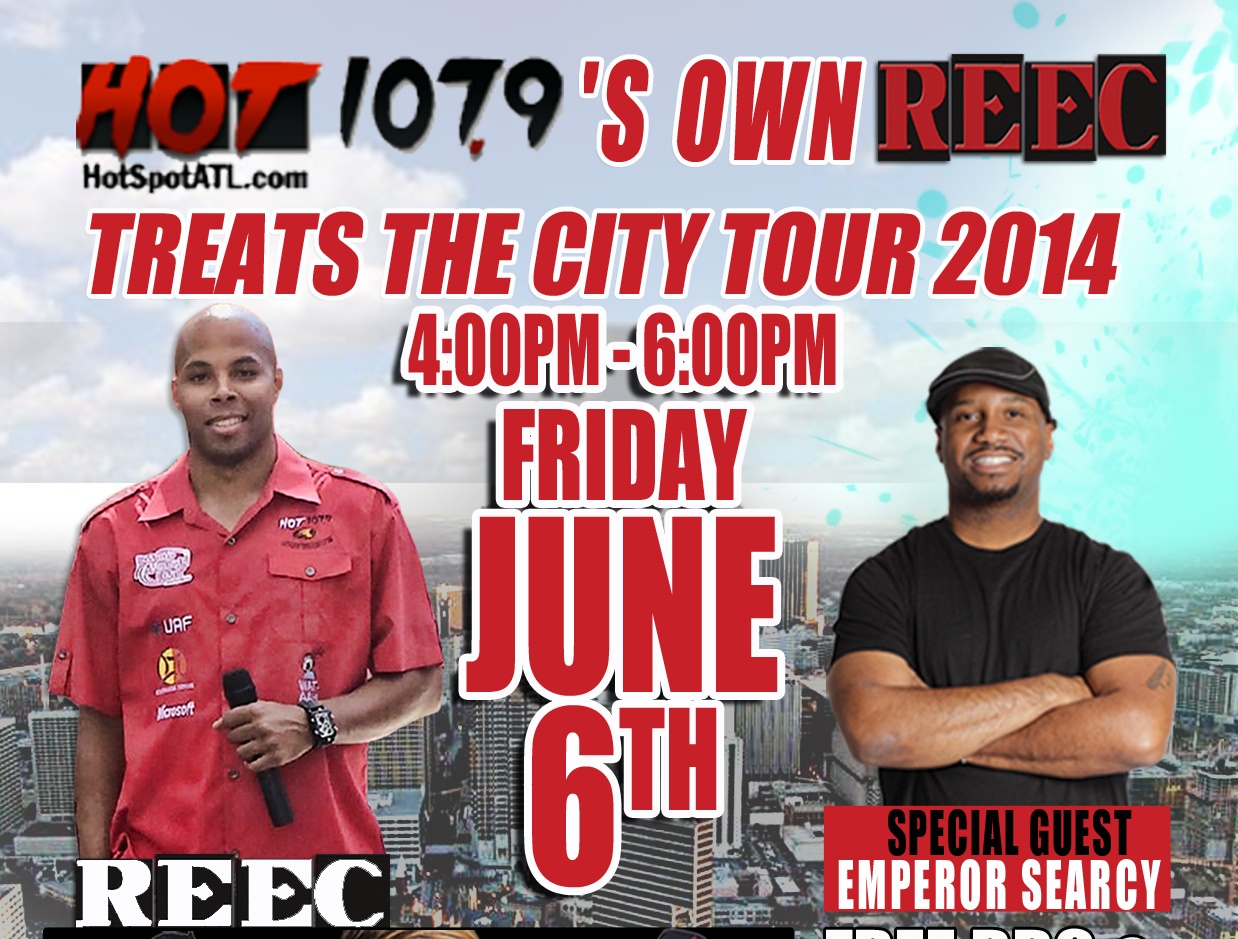Reec Treats The City” Free BBQ & Entertainment Tour is Back! This time Hot 107.9 on-air personality Emperor Searcy will be joining Reec to show our Listeners some love and appreciation with free food and entertainment!!!!!! Friday June 6th 4pm – 6pm Food – Fun – Entertainment and it’s all FREE! Express Oil Parking Lot: 650 […]