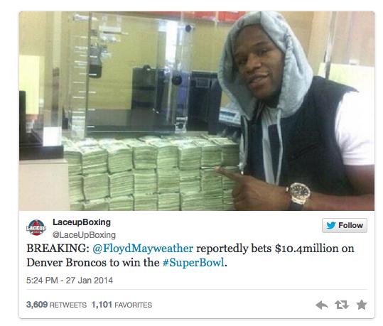 So there were rumors spreading nationwide that Money Mayweather placed a 10.4 million dollar bet on the super bowl. Mayweather posted a statement on his Insatgram page shortly after the game to dismiss the rumor. “Congratulations Seattle Seahawks for winning the Super Bowl! For the record, I did NOT bet $10 million on the the […]