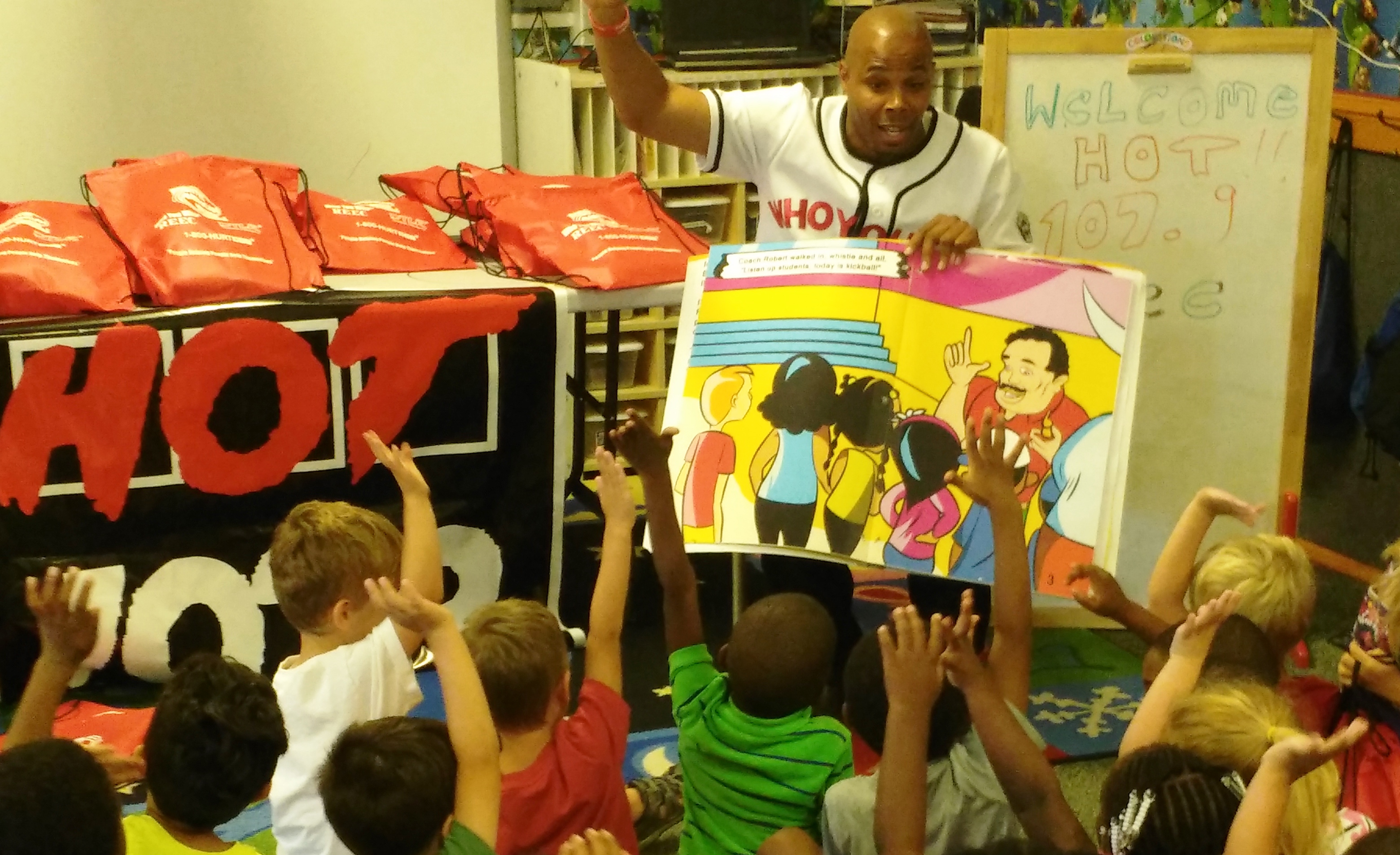 Hot 107.9's Reec brought his self authored books, Ice The Bully Books, and tons of toys and prizes courtesy of Positive American Youth(PAYUSA.org) and 1-800-HURT911 to have story time for the Preschool students!