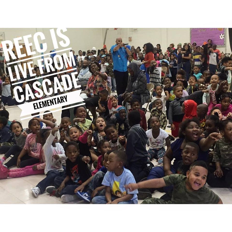 As you can see by the video, Reec Had a BLAST with the kids & Teachers of Cascade Elementary School Hosting Their Pep Rally! Thank You Positive American YouthFor providing goodies for the children & James Taylor (DJ Jay T) For coming through playing the music! To book your school email: Reec@radio-one.com
